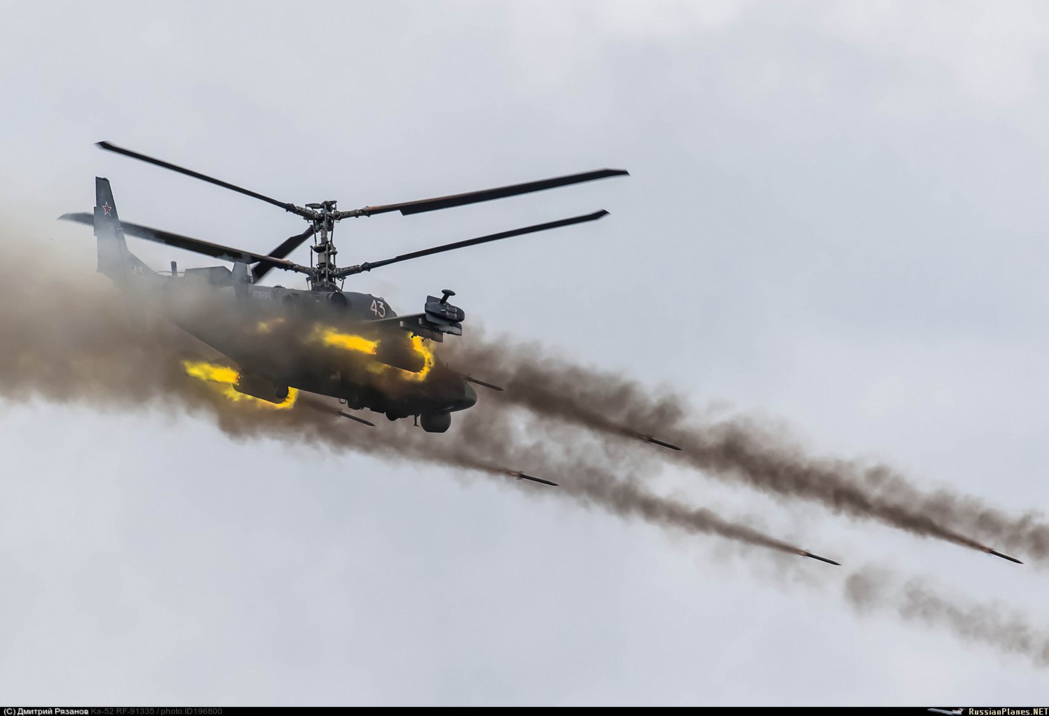 Боевой разведывательно-ударный вертолёт Ка-52 55-го отдельного Севастопольского полка армейской авиации ВКС РФ.